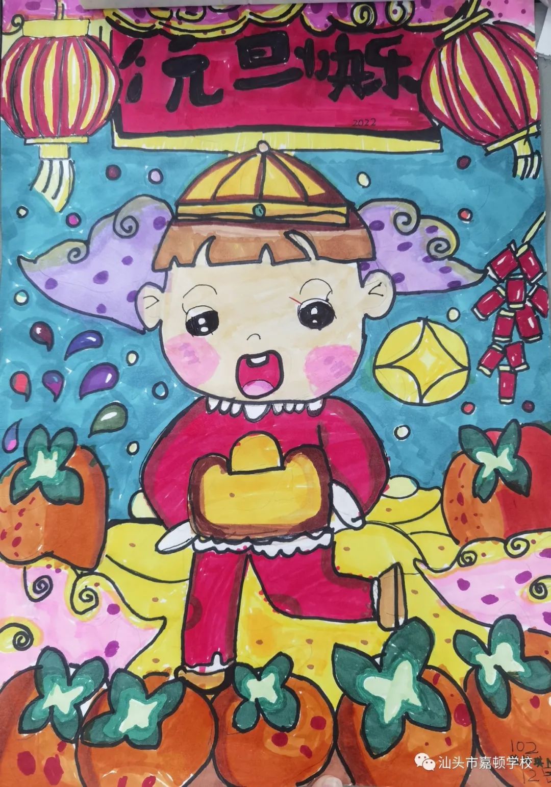 "童心绘梦迎新年" 小学五年级元旦迎春绘画