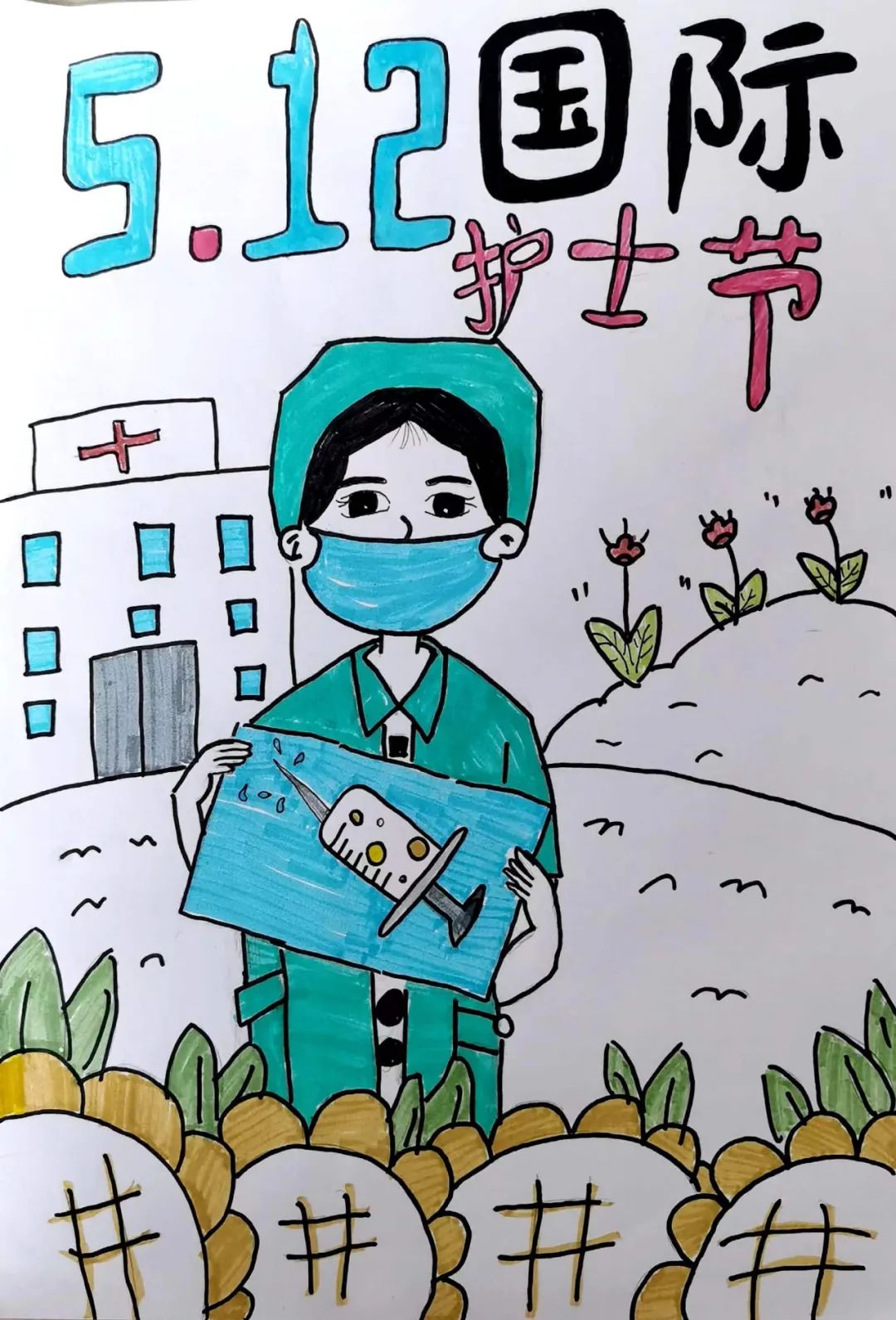 护士节儿童画——致敬白衣天使, 感恩有你们