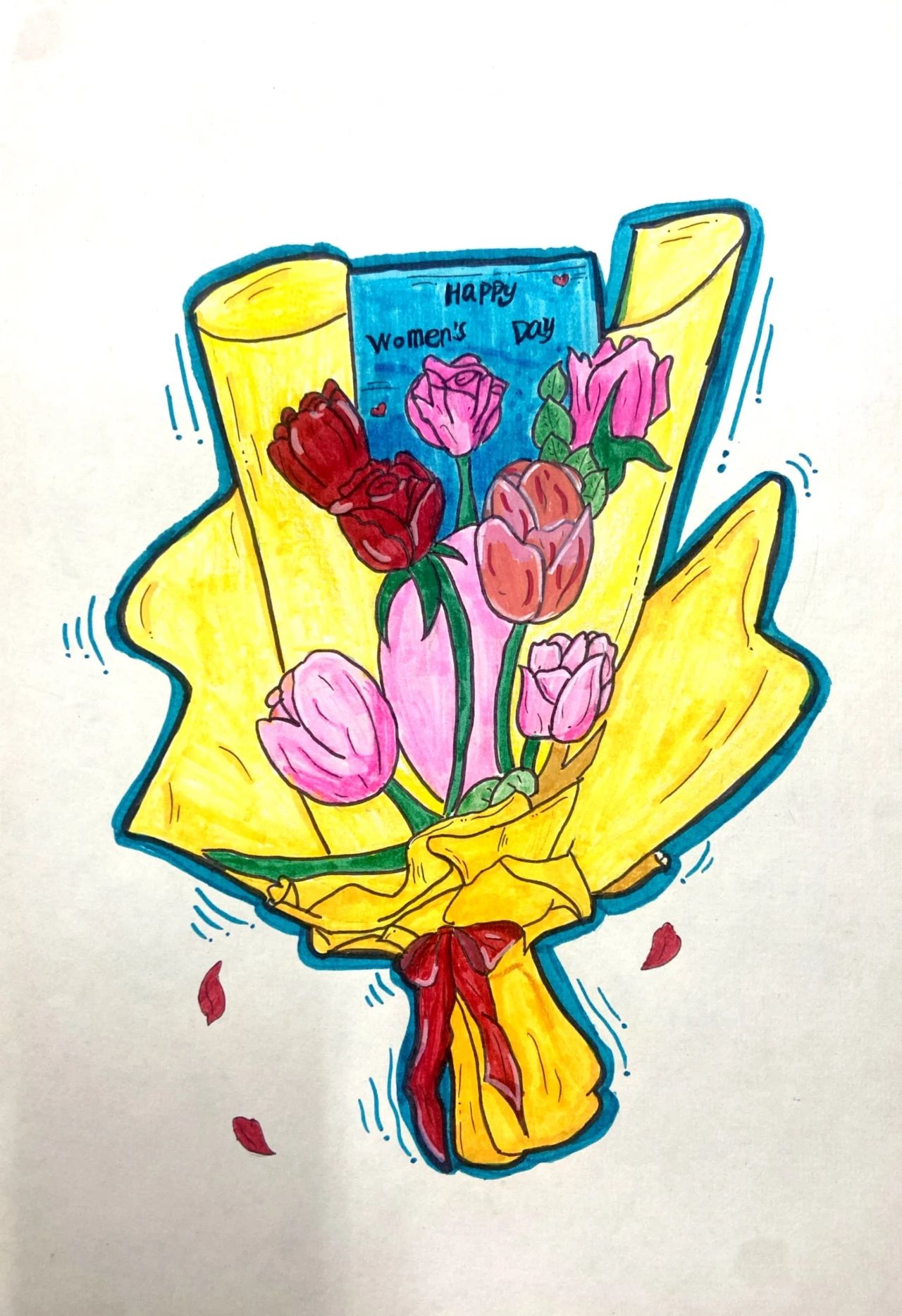 给妈妈的花束母亲节儿童绘画图片6张